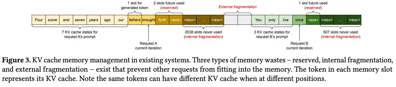 Solution: the paper proposed PagedAttention algorithm inspired by OS virtual memory and paging techniques.
